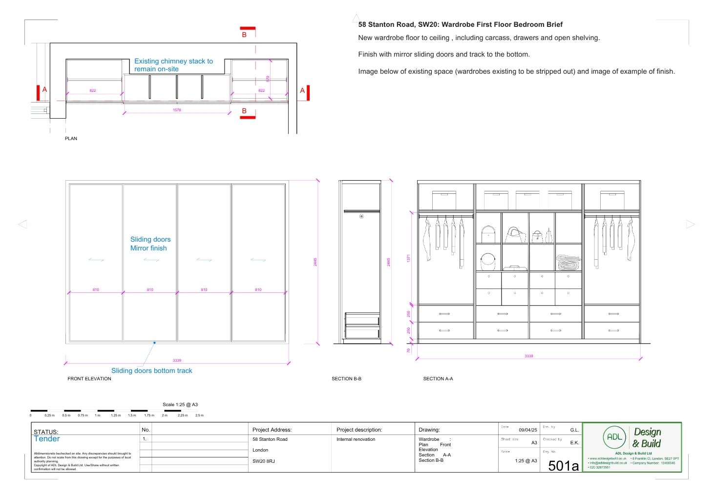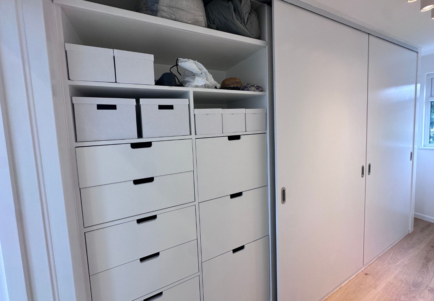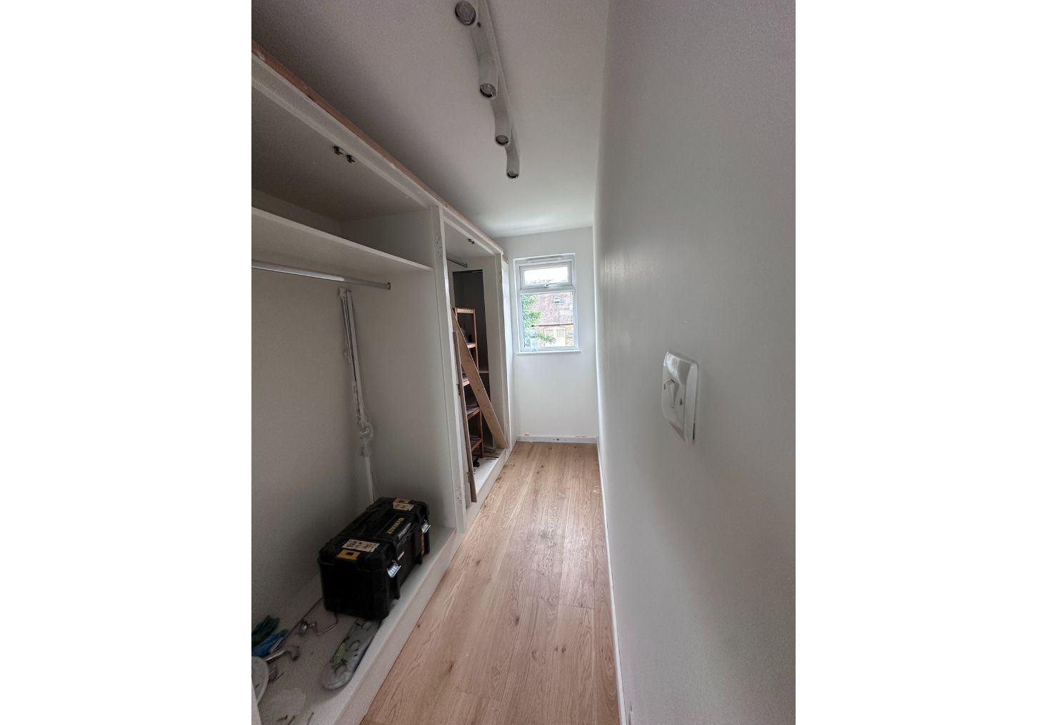 Project n. 58 was a part 2 continuation whereby interior works were carried out. This comprised of a full house renovation including loft conversion, walk-in bespoke wardrobe at loft level and ensuite. New first floor bathroom, newly refurbished first floor bedroom and fitted furniture. New wooden floor throughout and oak staircase through, inc. finish decoration of walls and ceilings.